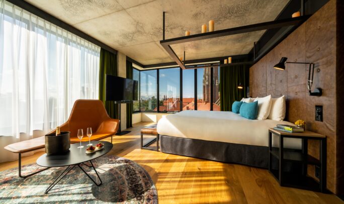 The hotel offers 184 rooms and suites carefully designed with attention to functionality, natural light, and premium materials. Raw textures of stone, concrete, and glass are beautifully balanced with artistic details that nod to Wrocław’s history and the symbolic character of the location. At the heart of the hotel is Craft restaurant, led by Chef Igor Arent-Rabiej, serving modern interpretations of seasonal, locally sourced ingredients. Up on the roof you’ll find the Sky Bar with sweeping panoramic views over the Oder, the Cathedral, and the city skyline. In spring and summer, it transforms into The Bridge Summer Bar—a true al fresco concept brimming with delicious food and signature cocktails.